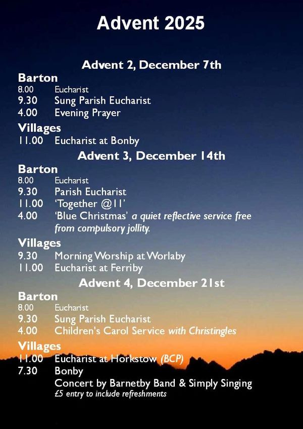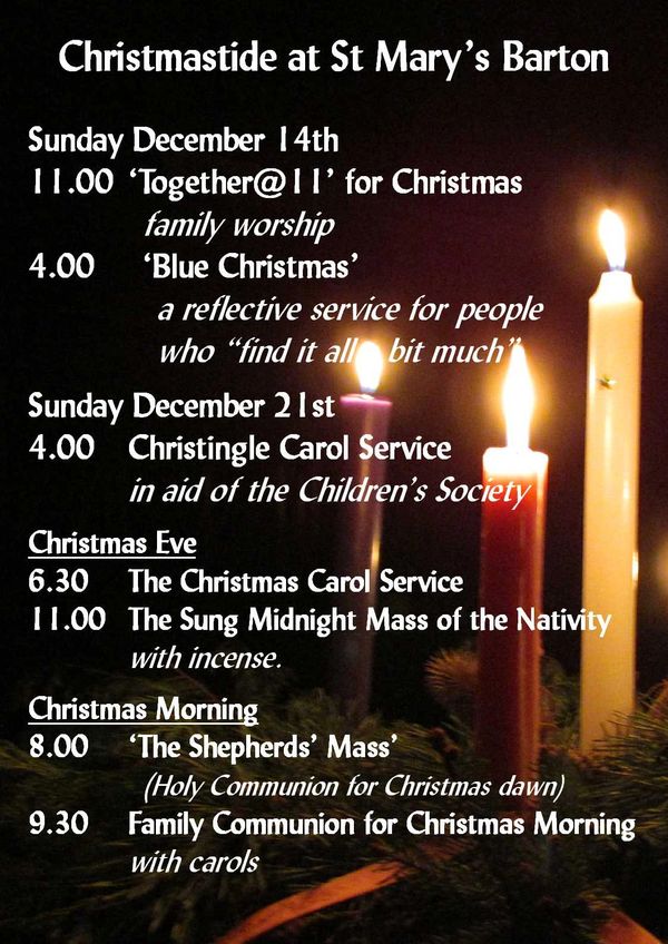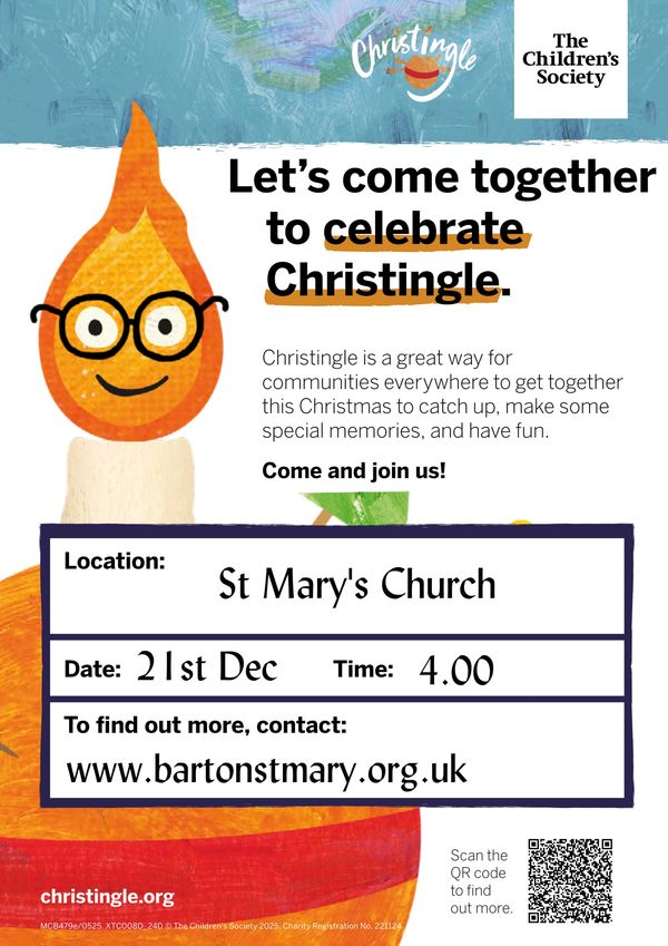This year's Christingle Carol Service at Barton will again be raising money for the work of the Childrens' Society, and donation envelopes and candles can be picked up from the back of Church.
